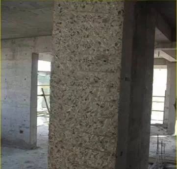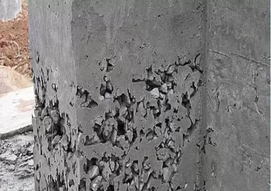 ②對較大蜂窩,鑿去薄弱松散顆粒,洗凈后支模,用高一強度等級的細石混凝土仔細填塞搗實;