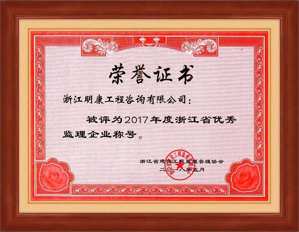 5月25日,2017年度浙江省優秀監理企業和優秀總監理工程師、優秀監理工程師的評選表彰結果揭曉,浙江明康咨詢公司等46家企業評為省優秀監理企業、余新發等199人評為省優秀總監理工程師、石建軍等256人評為省優秀監理工程師,這是對公司2017年取得成績的充分肯定。