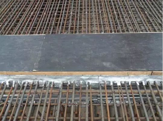 2、現澆板后澆帶模板上部側口模板與鋼筋位置鋸槽吻合,安裝牢固,或采用鋼絲(板)網支設牢固,上口兩側加設木方,并用木模板整體封閉、保護,直到砼澆筑時打開。