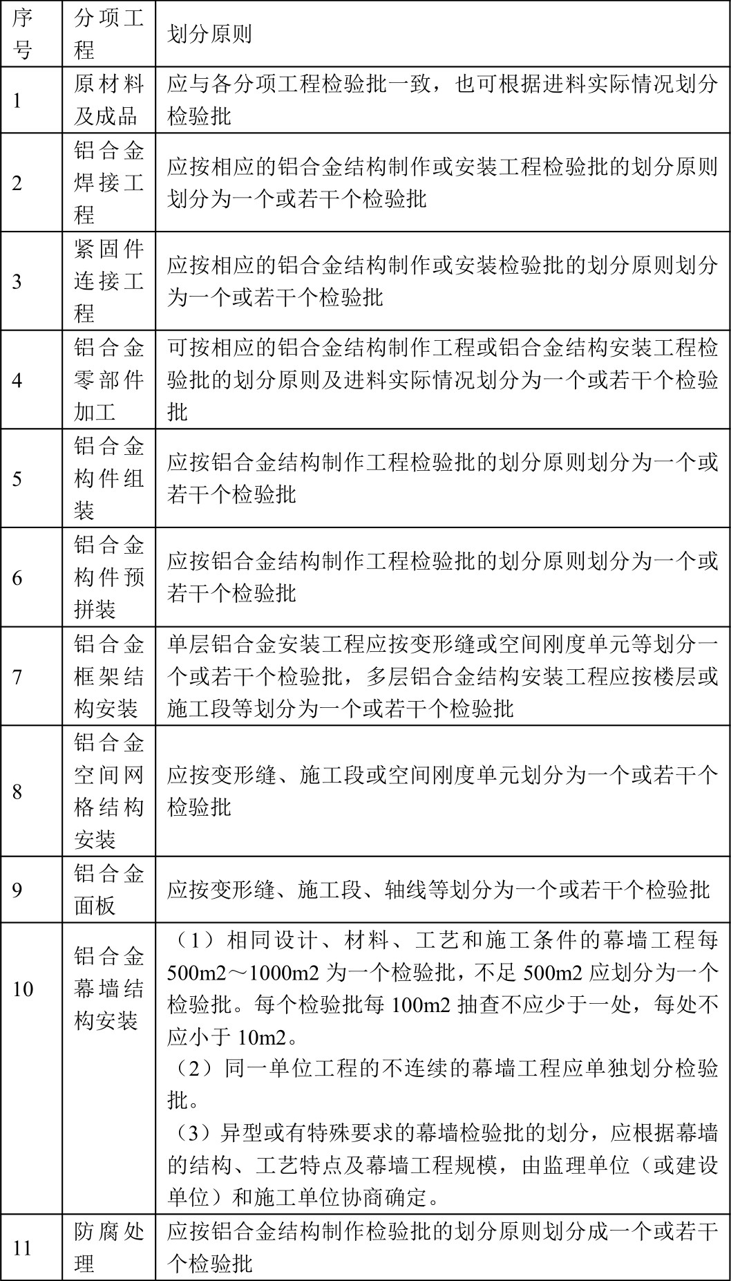26.1 檢驗(yàn)批的劃分(1)采用相同材料、工藝和施工做法的幕墻,按照幕墻面積每1000m2劃分為一個(gè)檢驗(yàn)批,不足1000m2也為一個(gè)檢驗(yàn)批。