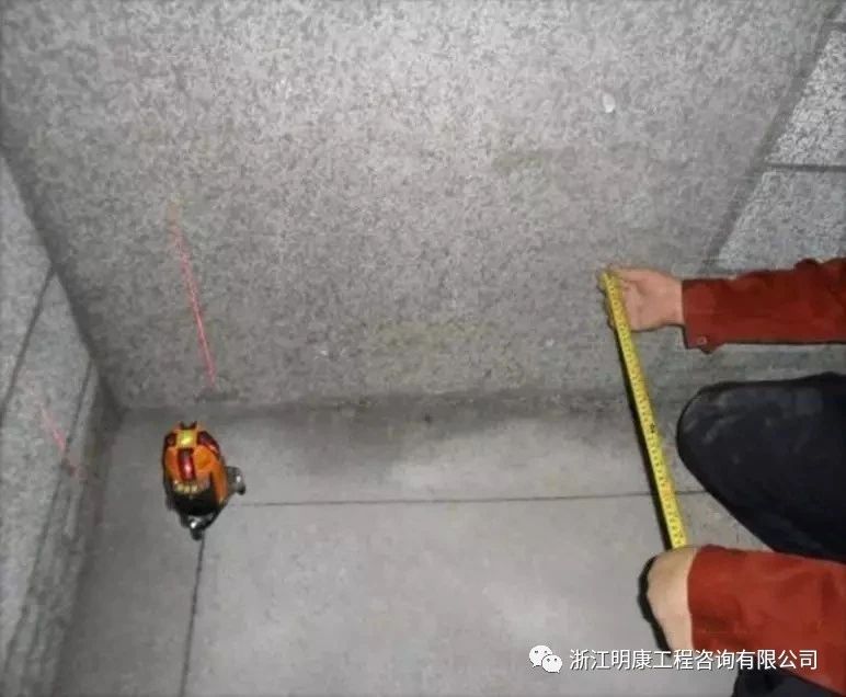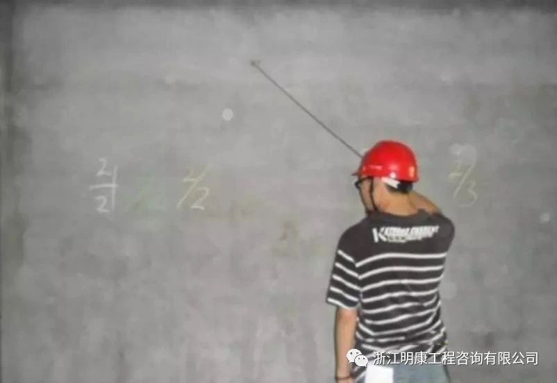 用釘子將測量數據標在墻上。做到隨抹、隨測、隨糾偏。