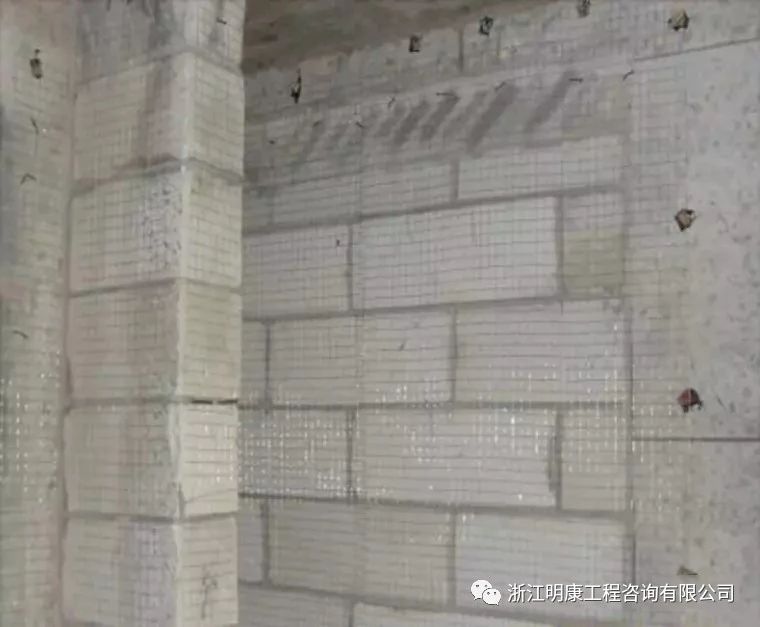 抹灰前對檢查發現的砌塊砌體表面缺棱掉角、開槽位置等需分層修補。做法是:先淋濕基體表面,刷摻水重10%的建筑膠水泥砂漿一道,緊跟抹1:2水泥砂漿,每遍厚度應控制在7~9mm。