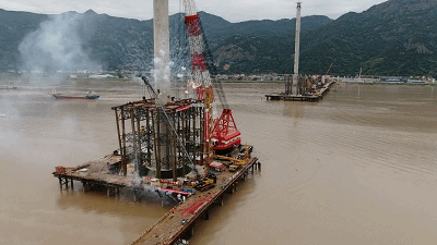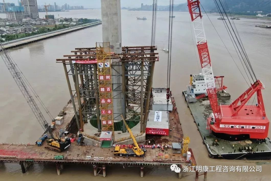 “一切準(zhǔn)備就緒,開始起吊”。2019年的8月30日上午6點(diǎn),溫州七都大橋北汊橋南塔首片鋼混疊合梁被600噸浮吊船平穩(wěn)提起,精準(zhǔn)地安裝到預(yù)定位置。這標(biāo)志著大橋建設(shè)又一重大節(jié)點(diǎn)——主梁吊裝施工正式開始。