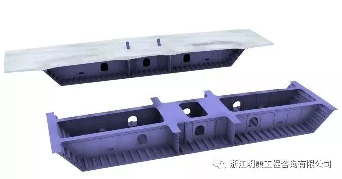 七都大橋北汊橋橋面結(jié)構(gòu)采用鋼混疊合梁形式,總長680m,總重達(dá)1.1萬噸。本次吊裝的首節(jié)鋼梁長10m,寬11.3m,高3.5m,重量約250t,采用槽型鋼梁和鋼筋混凝土橋面板疊合的型式。