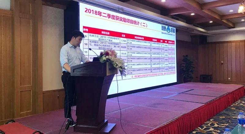 會議開始,由公司工程部經(jīng)理何伯豐對公司近期獲得的榮譽進(jìn)行宣布,以及對二季度公司項目動態(tài)、行業(yè)動態(tài)進(jìn)行數(shù)據(jù)統(tǒng)計分析,結(jié)合工程部二季度工作中發(fā)現(xiàn)的問題進(jìn)行總結(jié)匯報和后期工程部對項目考核的調(diào)整,工作計劃的說明;