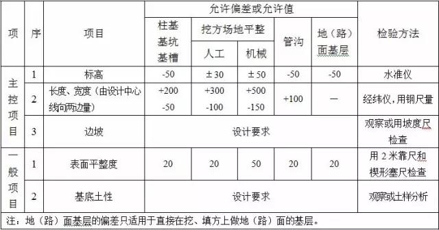 2、填方施工結束后,應檢查標高、邊坡坡度、壓實程度等,檢驗標準應符合下表的規定。