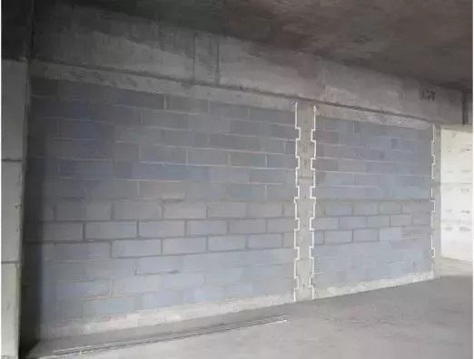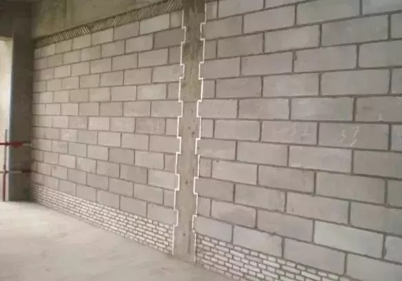 砌塊墻體的轉角處和交接處應同時砌筑,嚴禁無可靠措施的內外墻分砌施工;對不能同時砌筑而且必須留置的臨時間斷處應砌成斜槎,斜槎水平投影長度不得小于高度的 2/3。臨時間斷處補砌時應將接槎處灰漿及雜物清理干凈,澆水濕潤,并用砂漿填實保持灰縫順直。