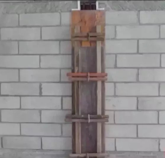 【說明】整面墻砌筑封頂 7 天后澆筑構造柱,構造柱的模板采用對拉螺桿拉結,并在柱頂端制作喇叭口,混凝土澆筑成牛腿,模板拆除后將牛腿鑿除。