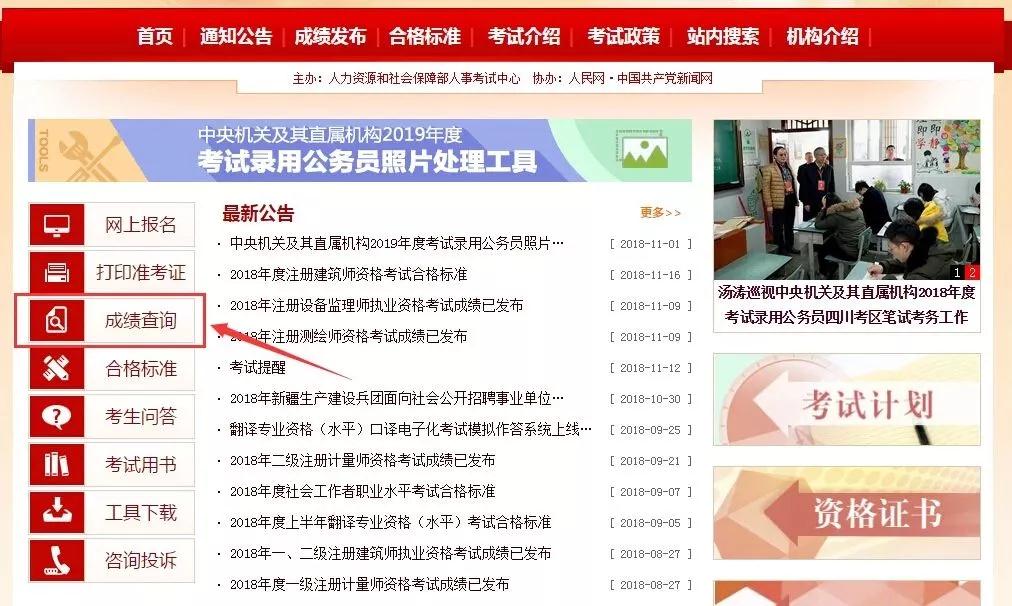點(diǎn)擊首頁左側(cè)“成績查詢”,進(jìn)入2018年一級(jí)建造師成績查詢?nèi)肟凇H鐖D所示:
